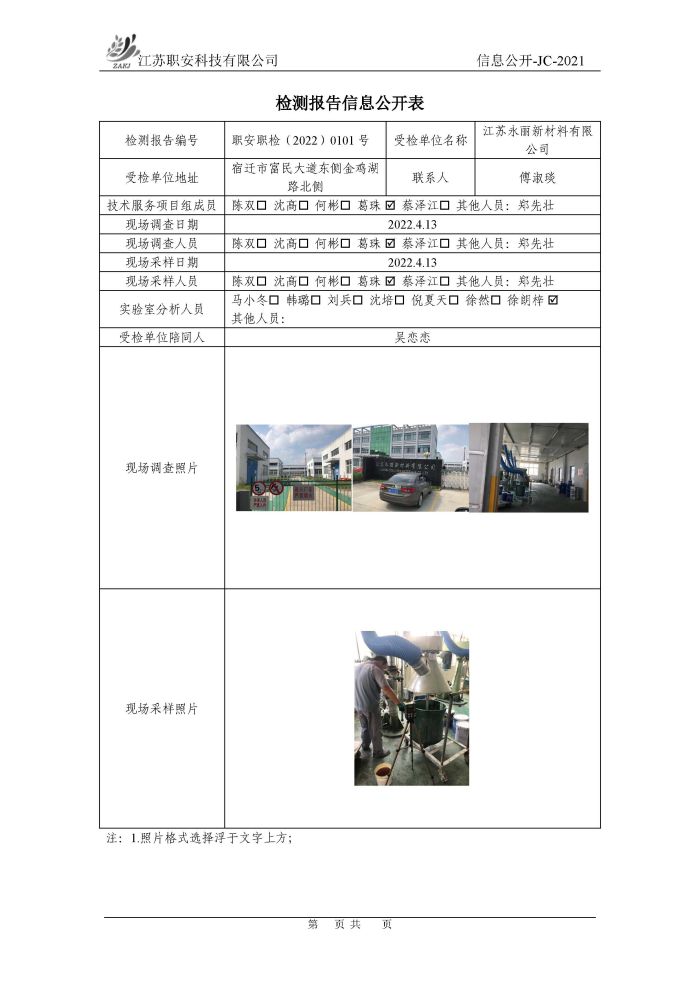 檢測報告公示