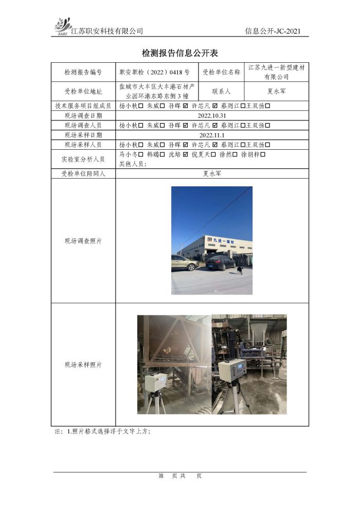檢測報告公示