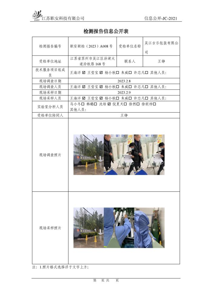 檢測報告公示