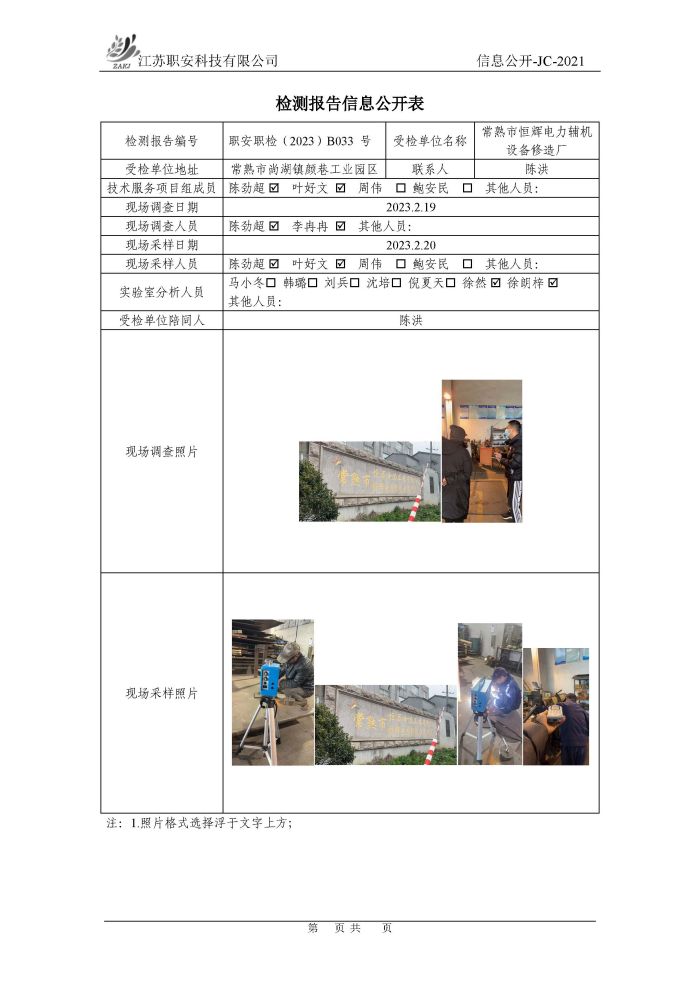 檢測報告公示