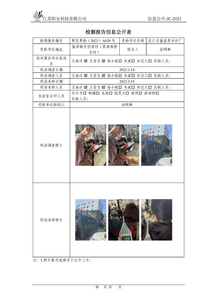 檢測報告公示