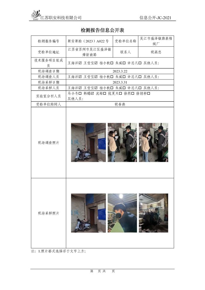 檢測報告公示
