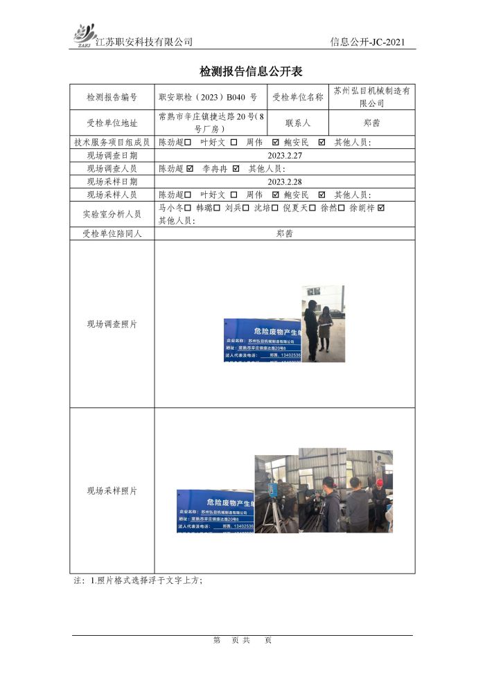 檢測報告公示