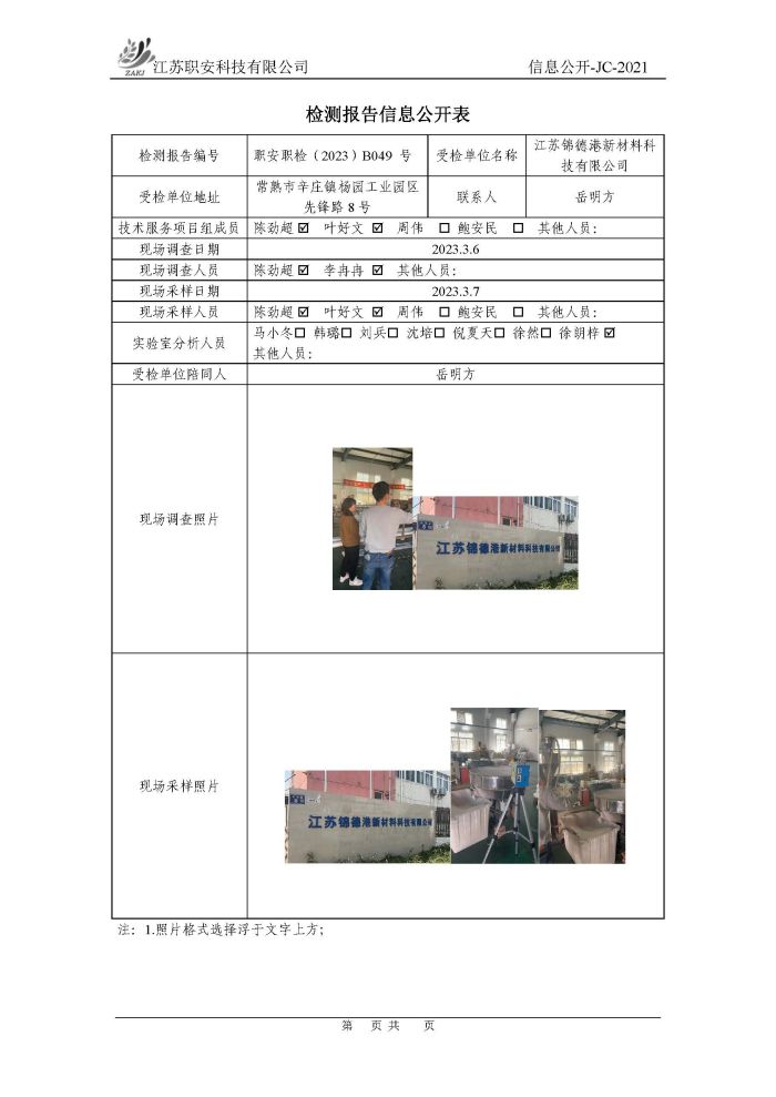 檢測報告公示