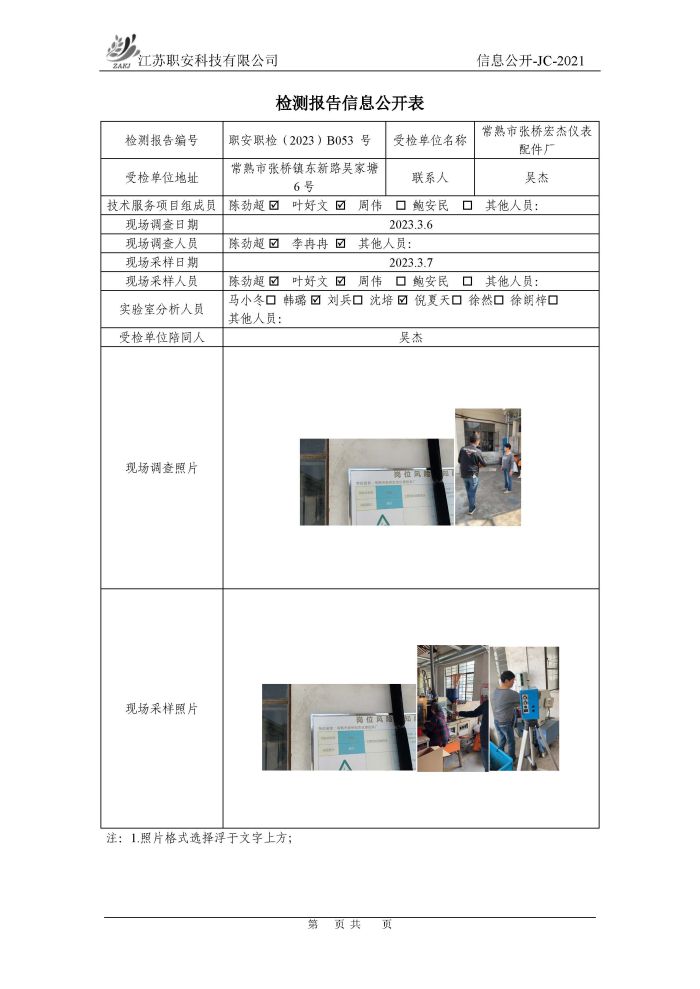 檢測報告公示