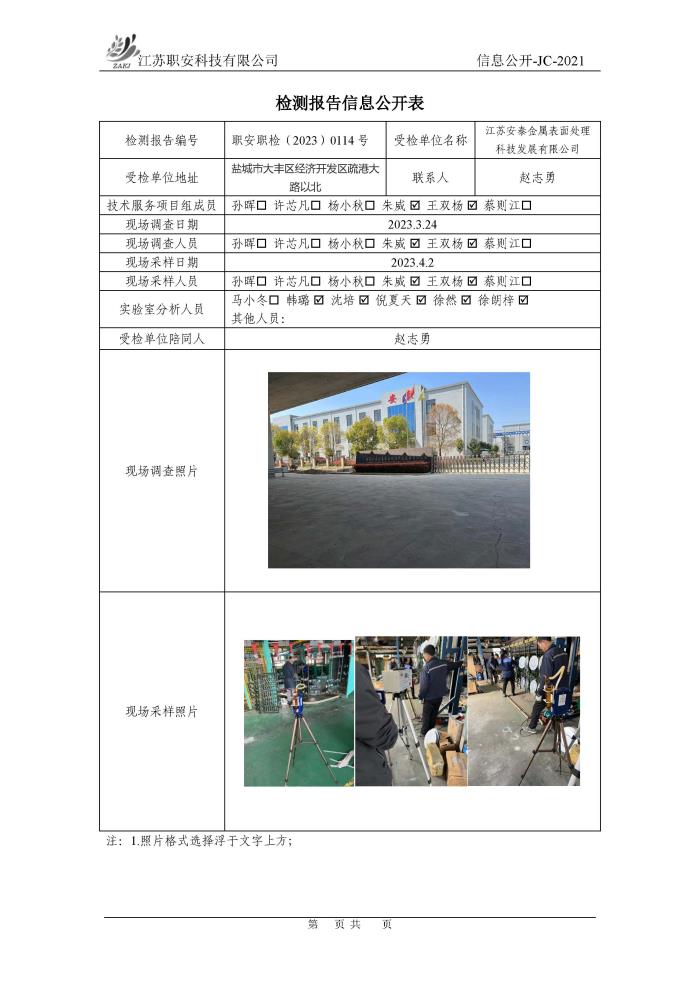 檢測報告公示