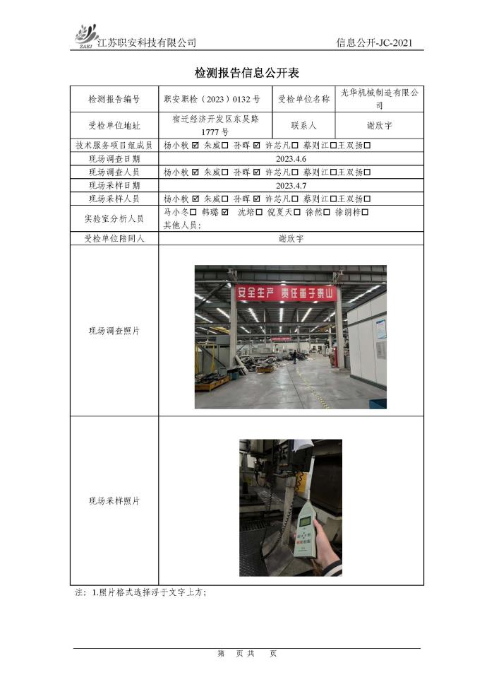 檢測報告公示