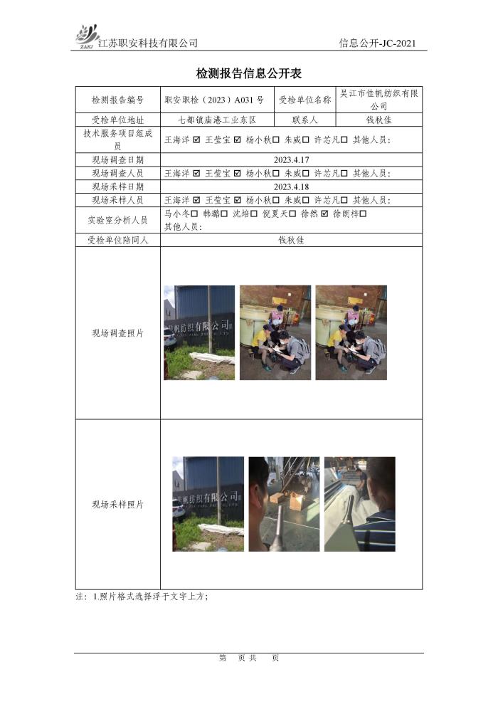 檢測報告公示