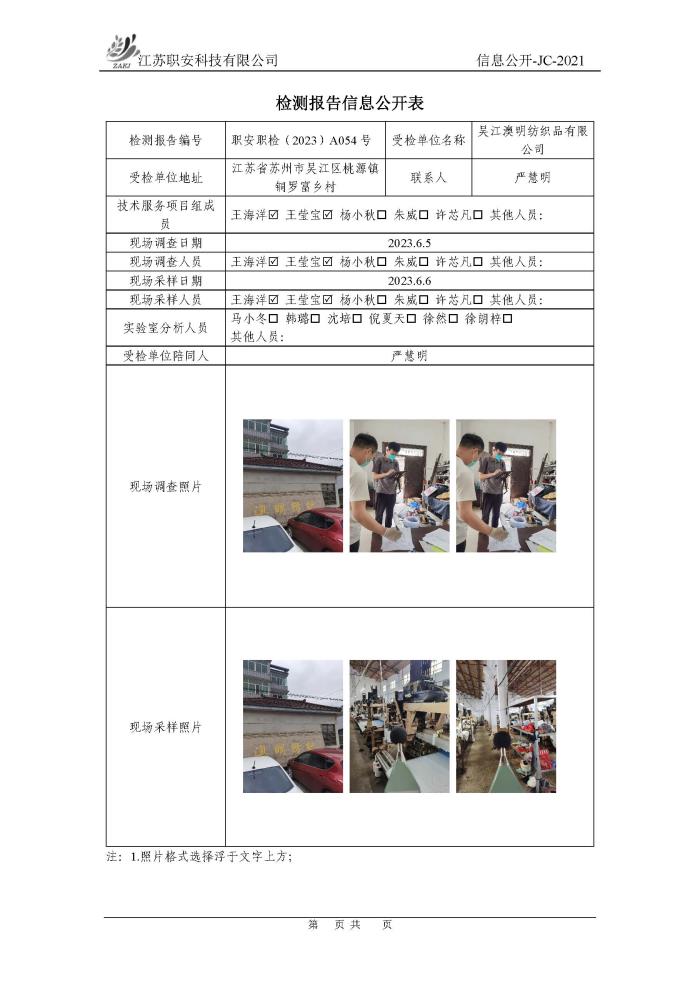 檢測報告公示