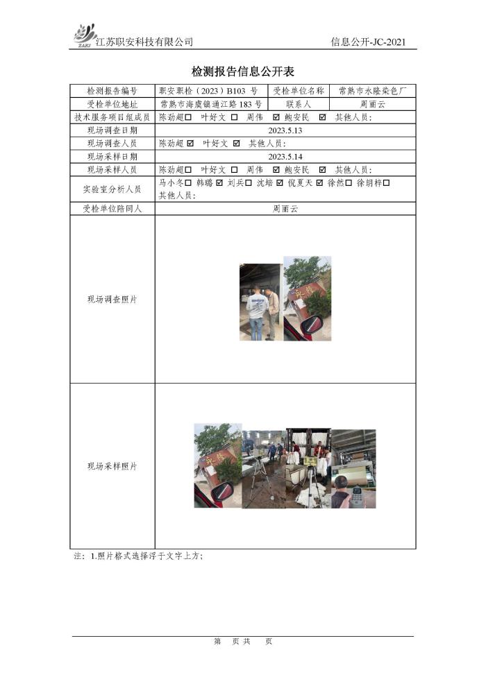 檢測報告公示
