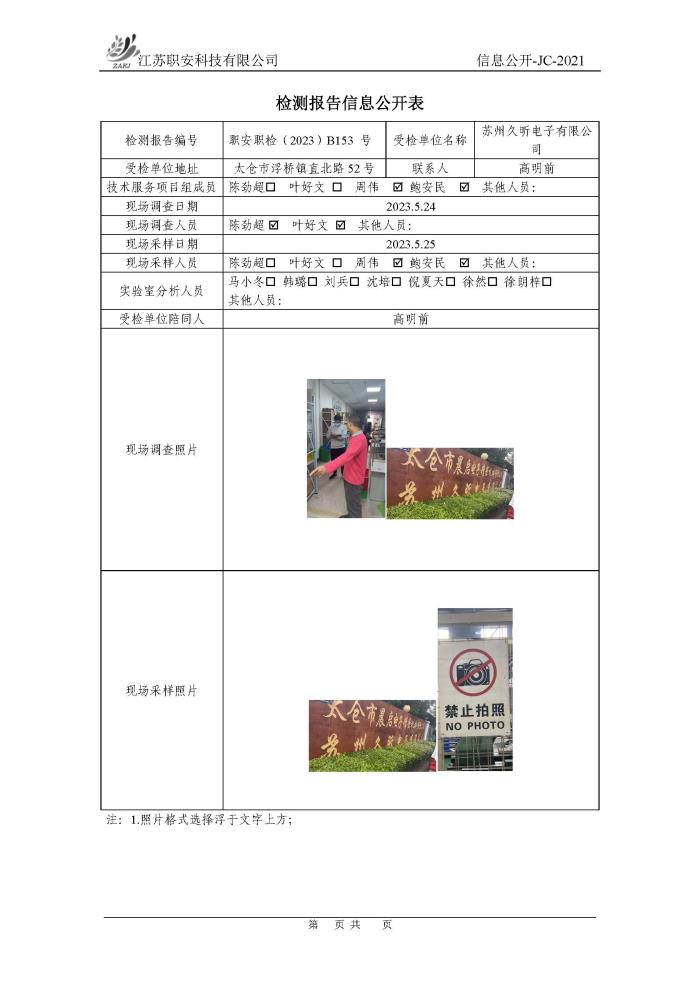 檢測報告公示