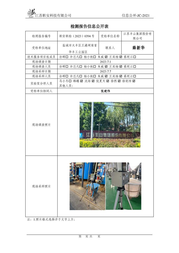 檢測報告公示