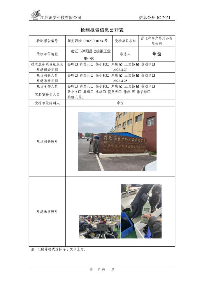檢測報告公示