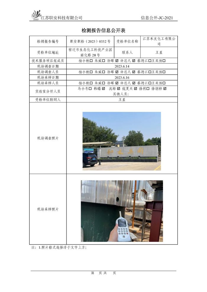檢測報告公示