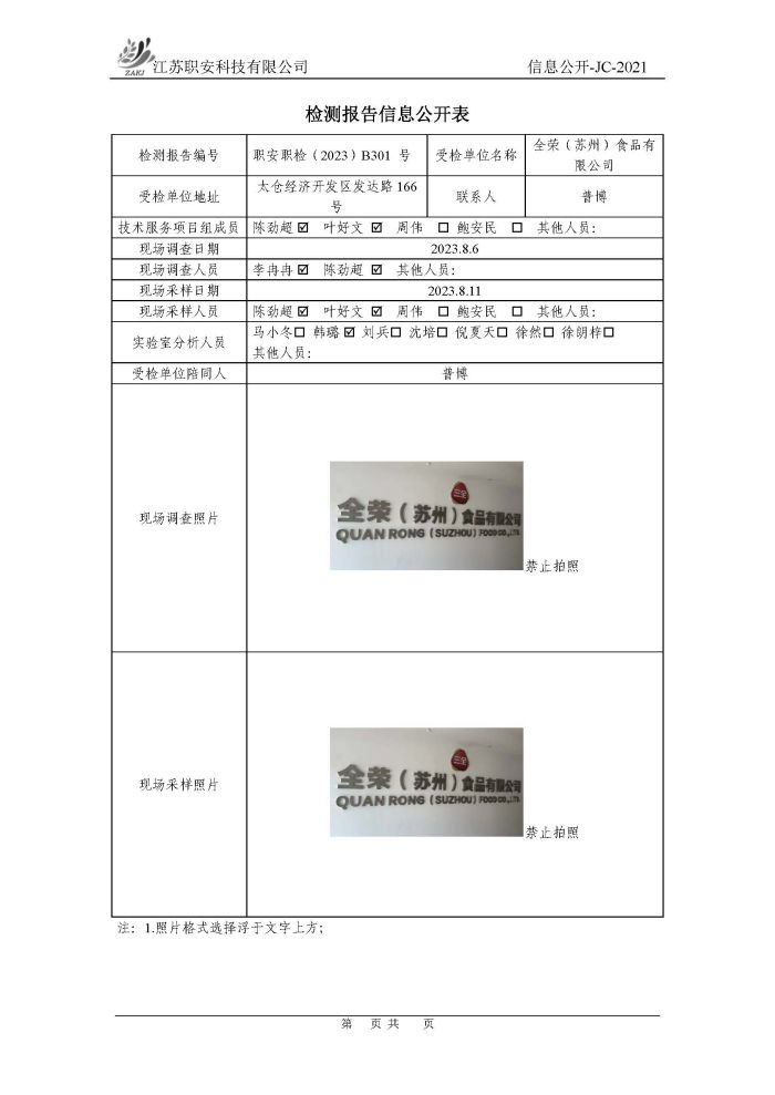 檢測報告公示