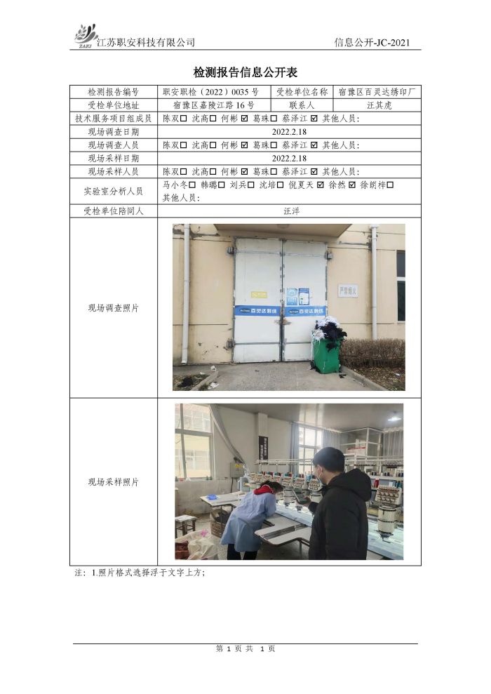 檢測報告公示