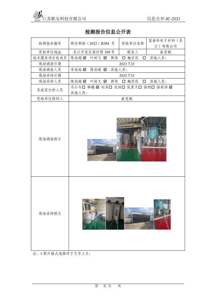檢測報告公示