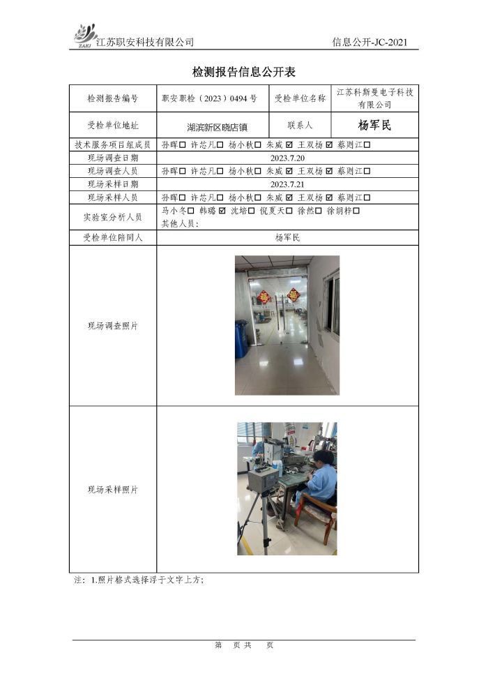檢測報告公示