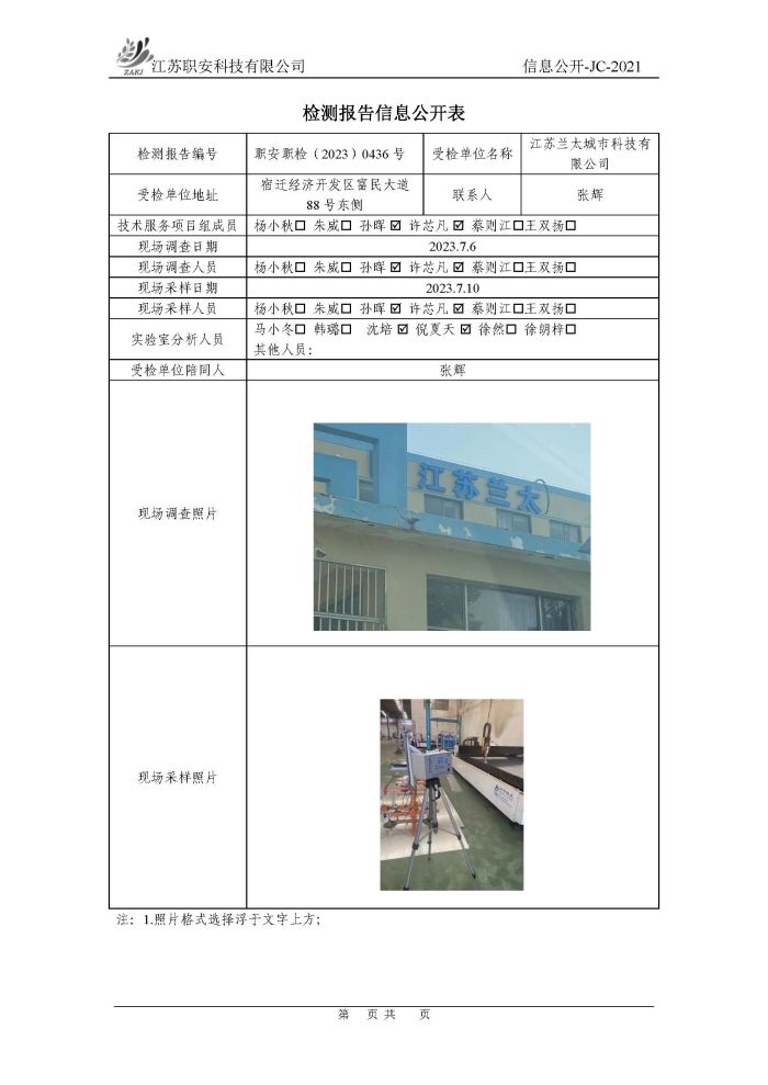 檢測報告公示