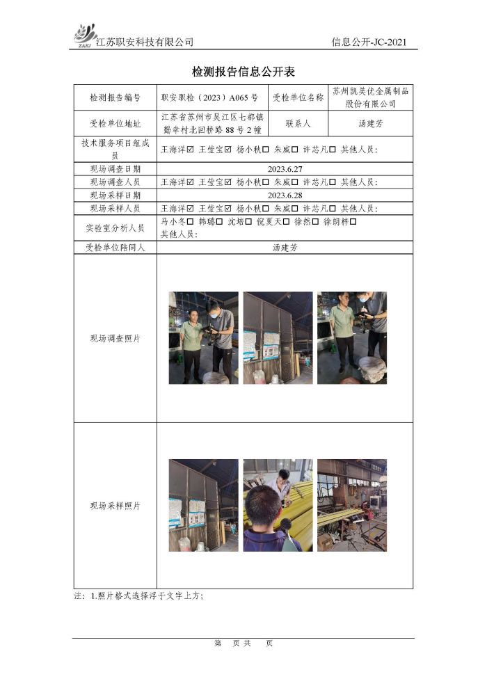 檢測報告公示