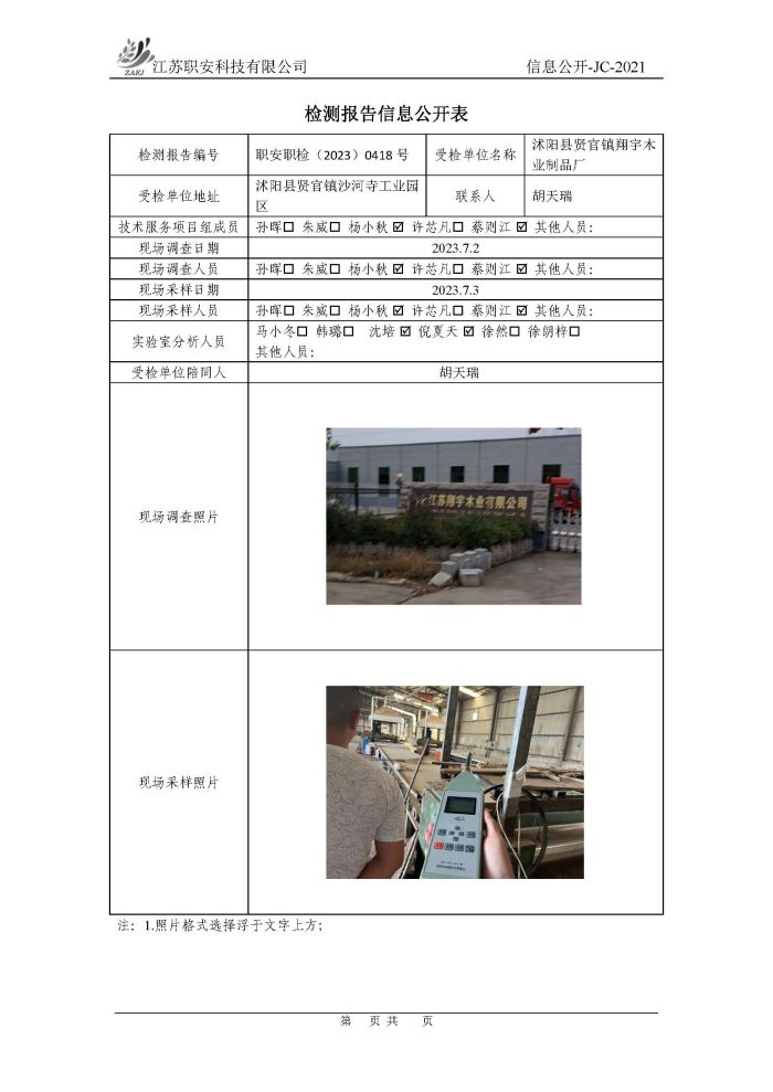 檢測報告公示