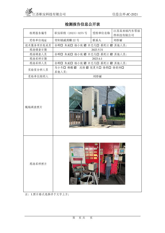 檢測報告公示