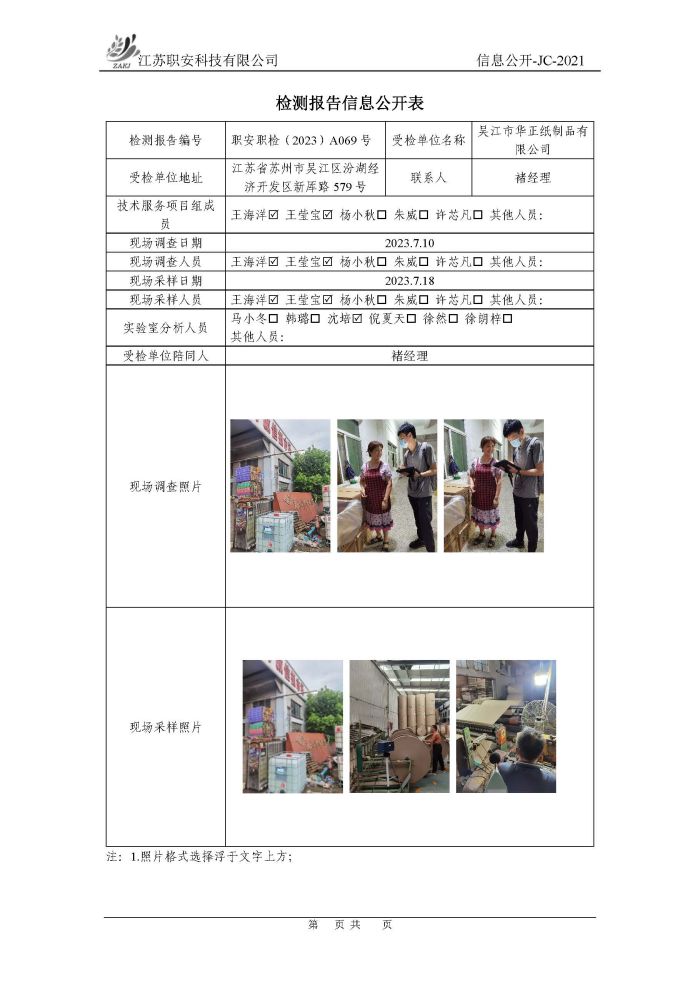 檢測報告公示