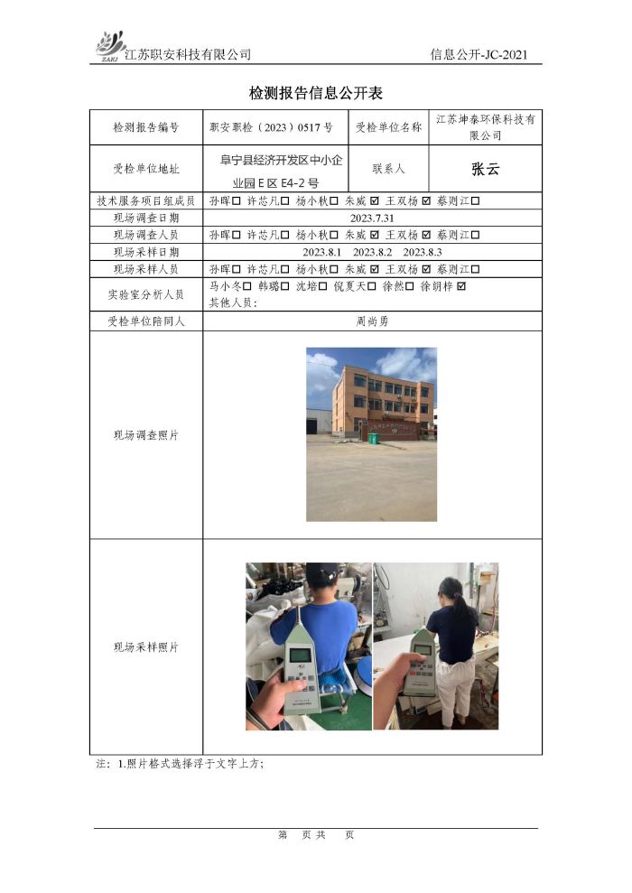 檢測報告公示