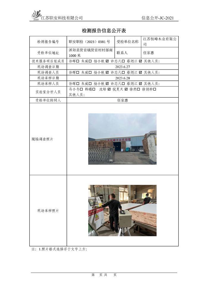 檢測報告公示