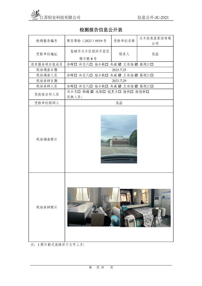 檢測報告公示