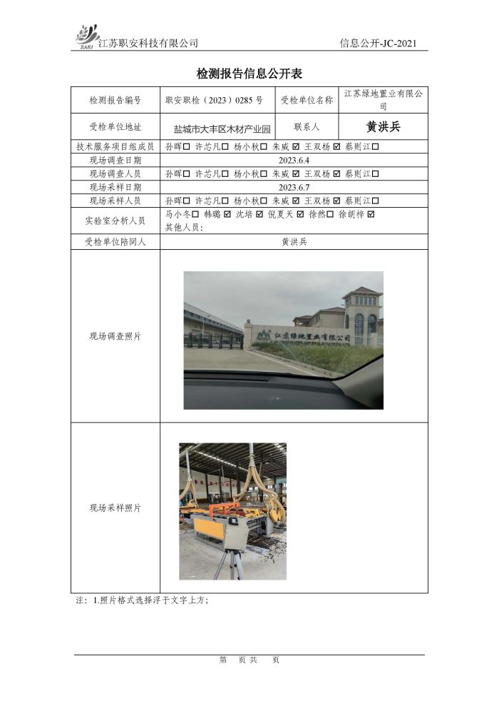 檢測報告公示
