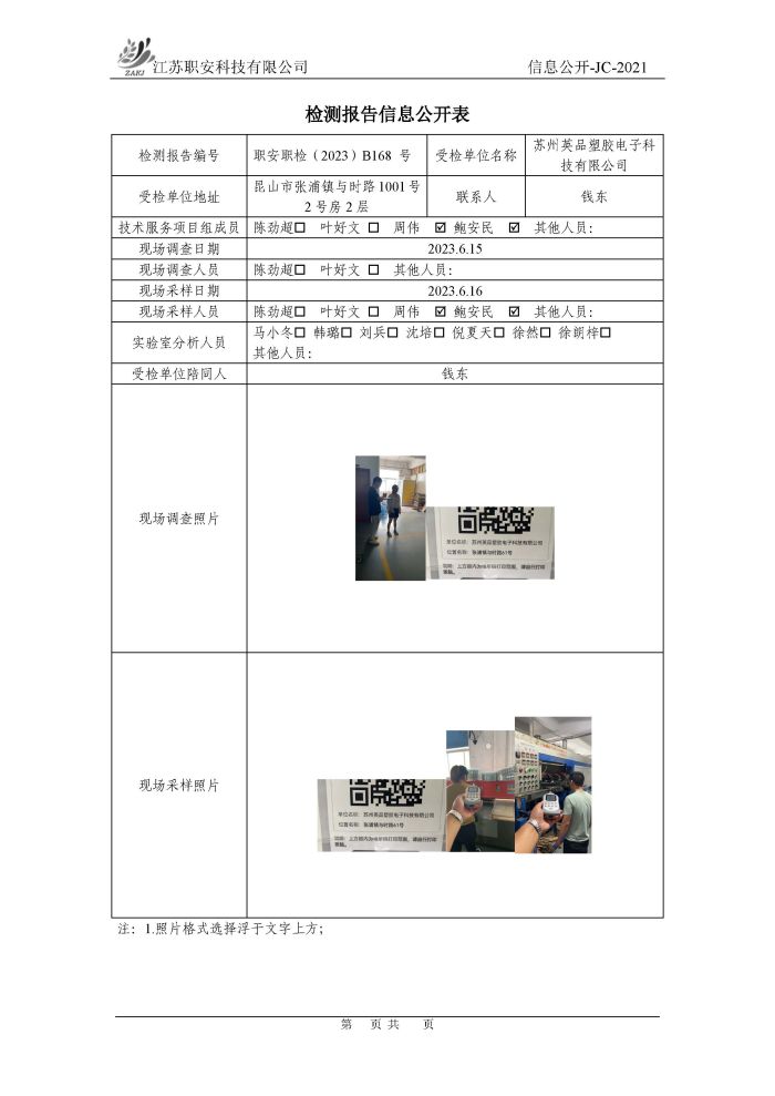檢測報告公示