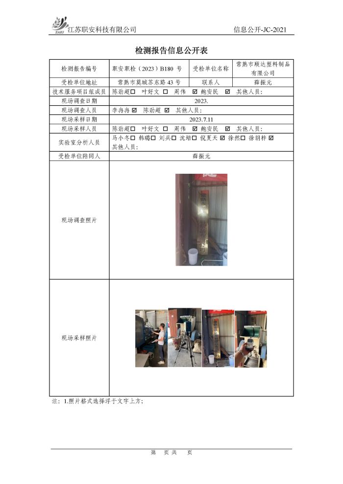 檢測報告公示