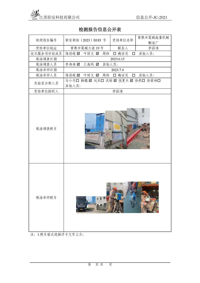 檢測報告公示