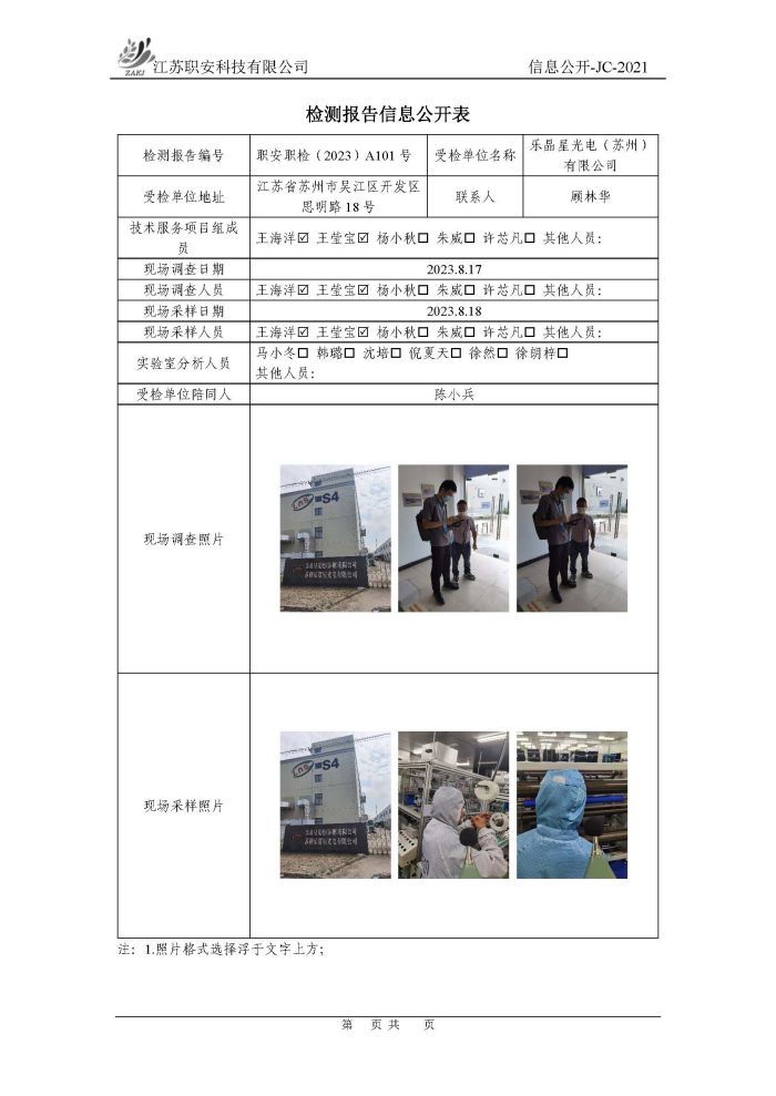 檢測報告公示