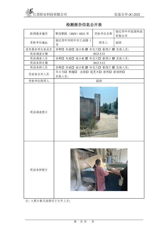 檢測報告公示