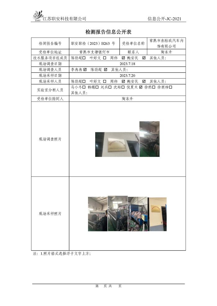 檢測報告公示