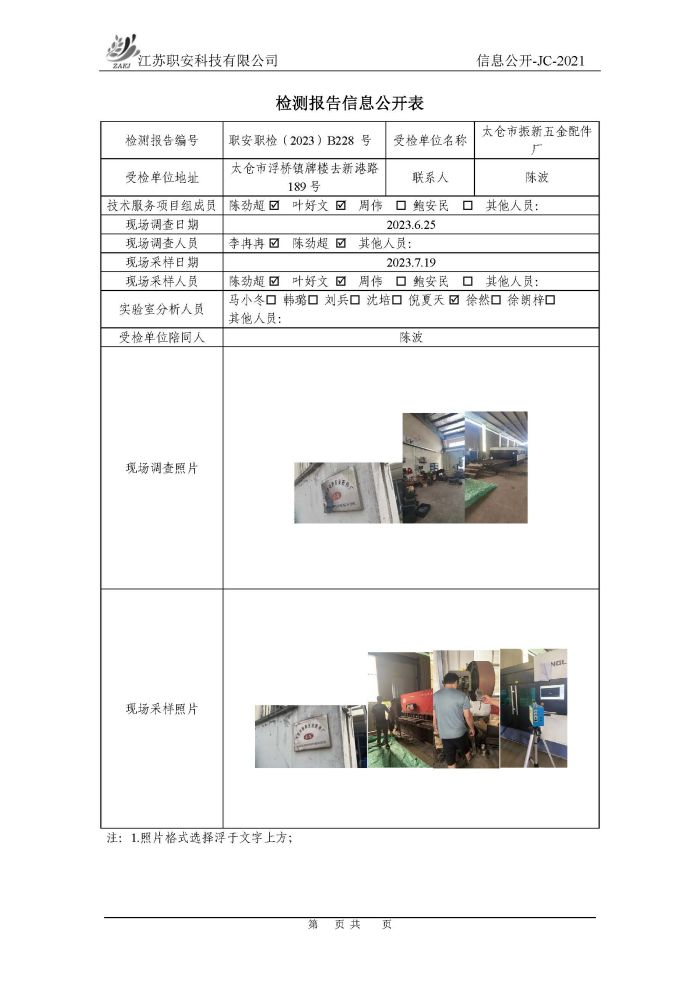檢測報告公示