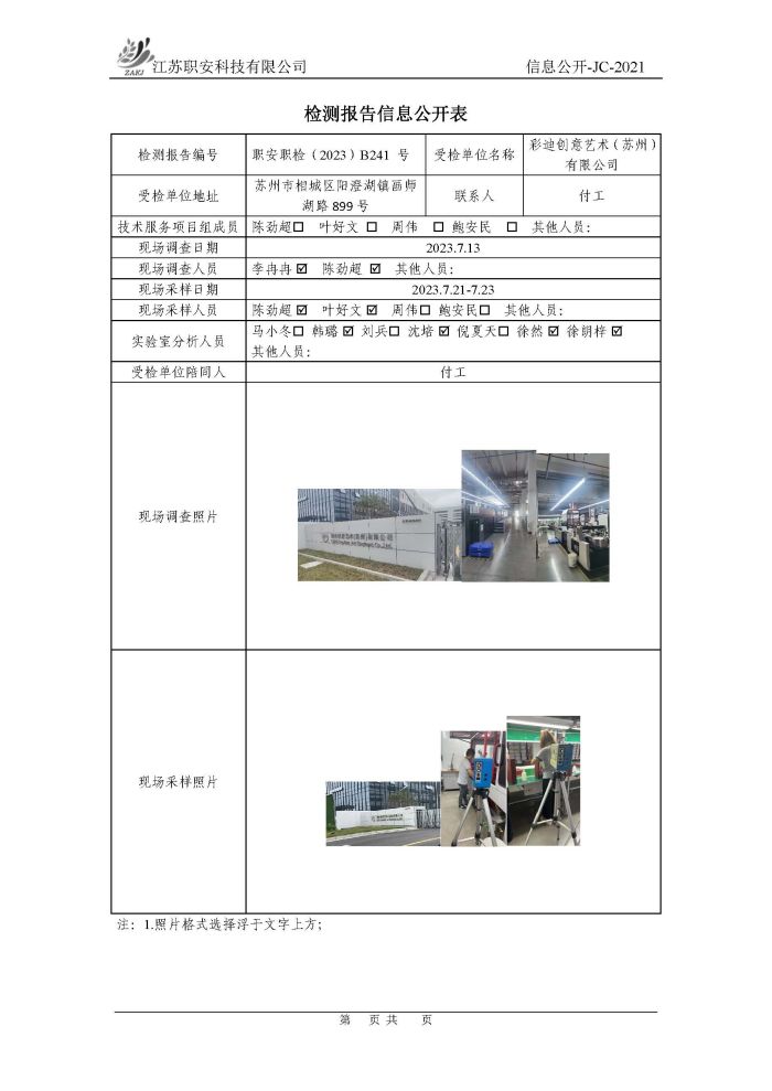 檢測報告公示