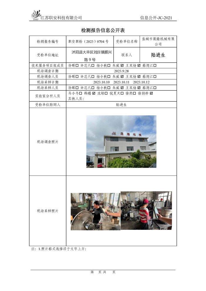 檢測報告公示