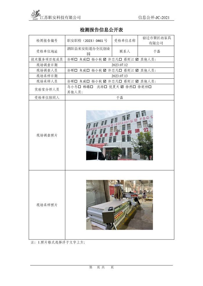 檢測報告公示