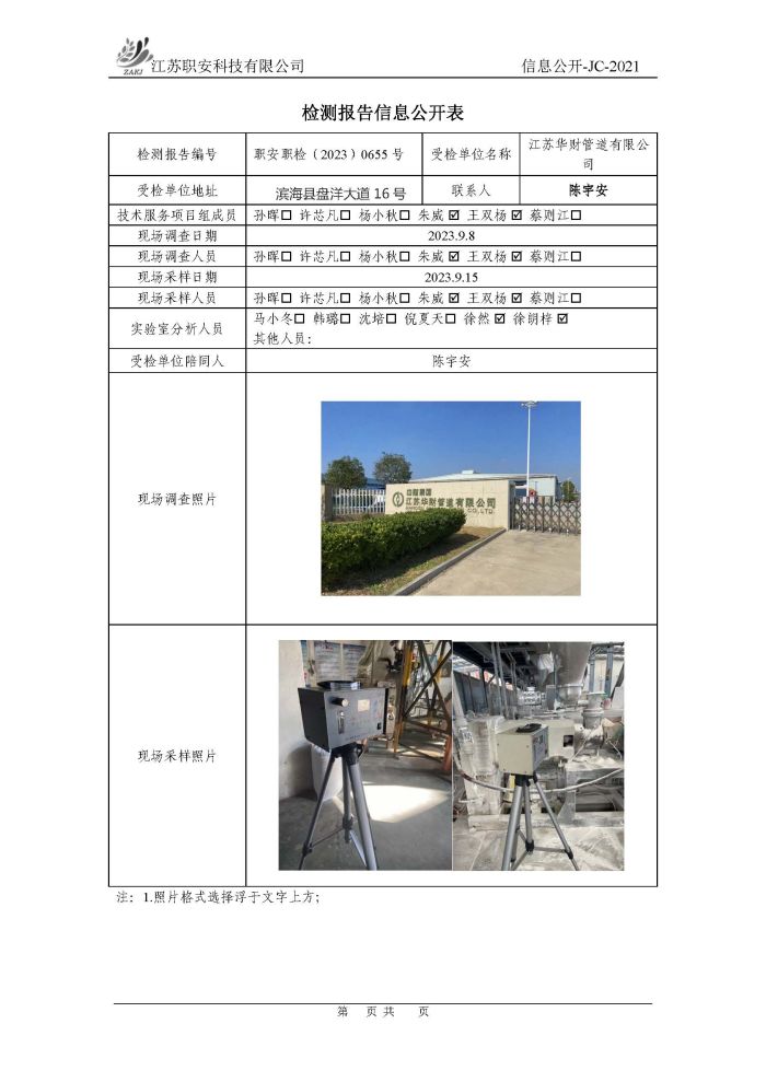 檢測報告公示