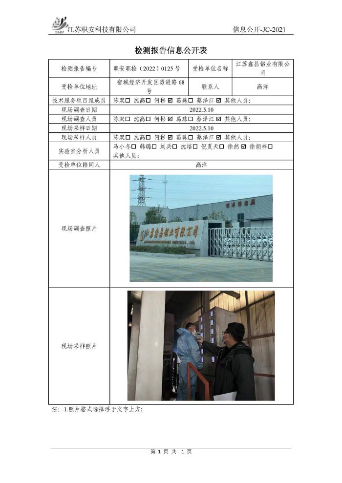 檢測報告公示