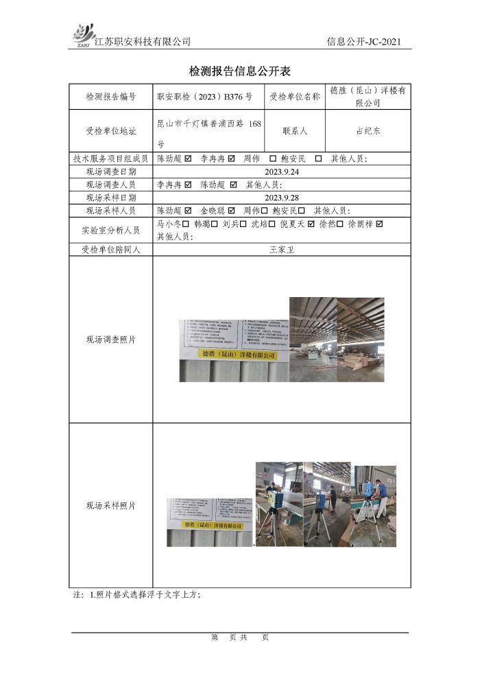 檢測報告公示