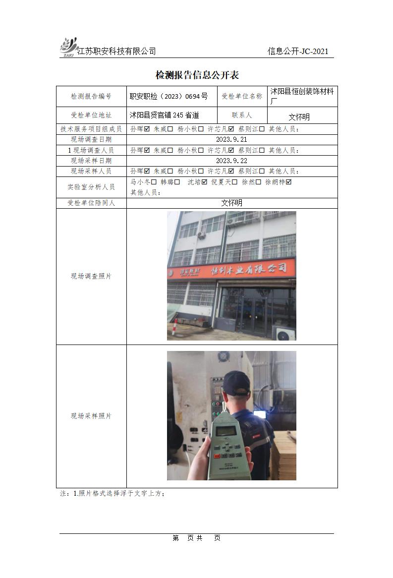 檢測報告公示