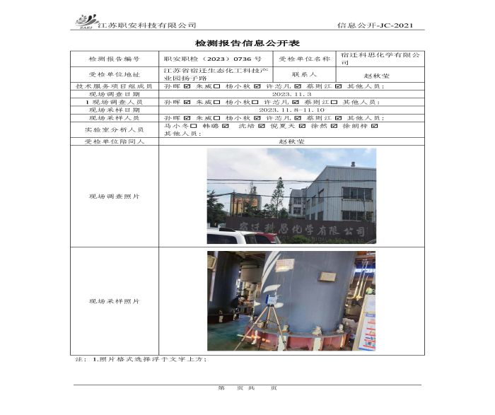 檢測報告公示