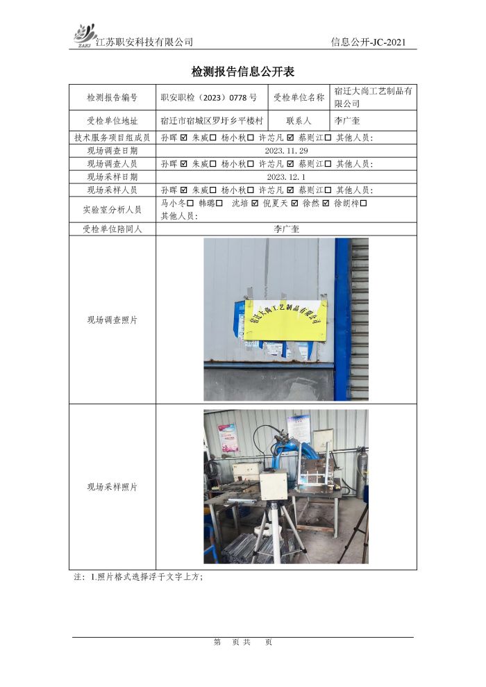 檢測報告公示