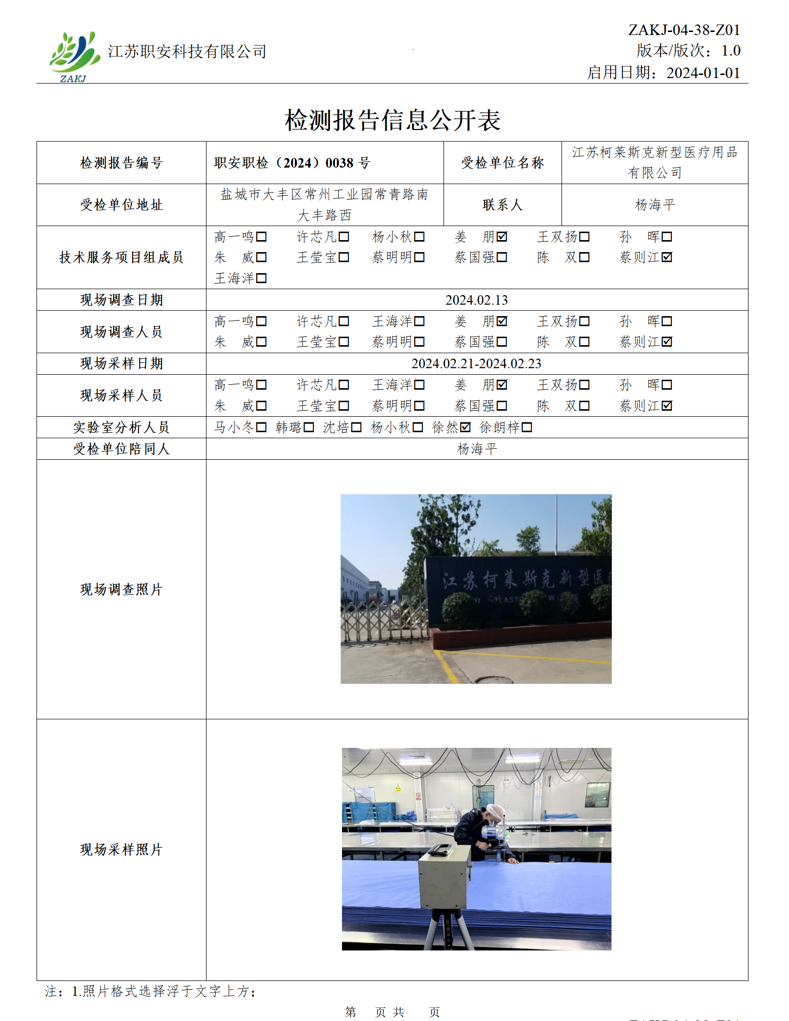 檢測報告公示