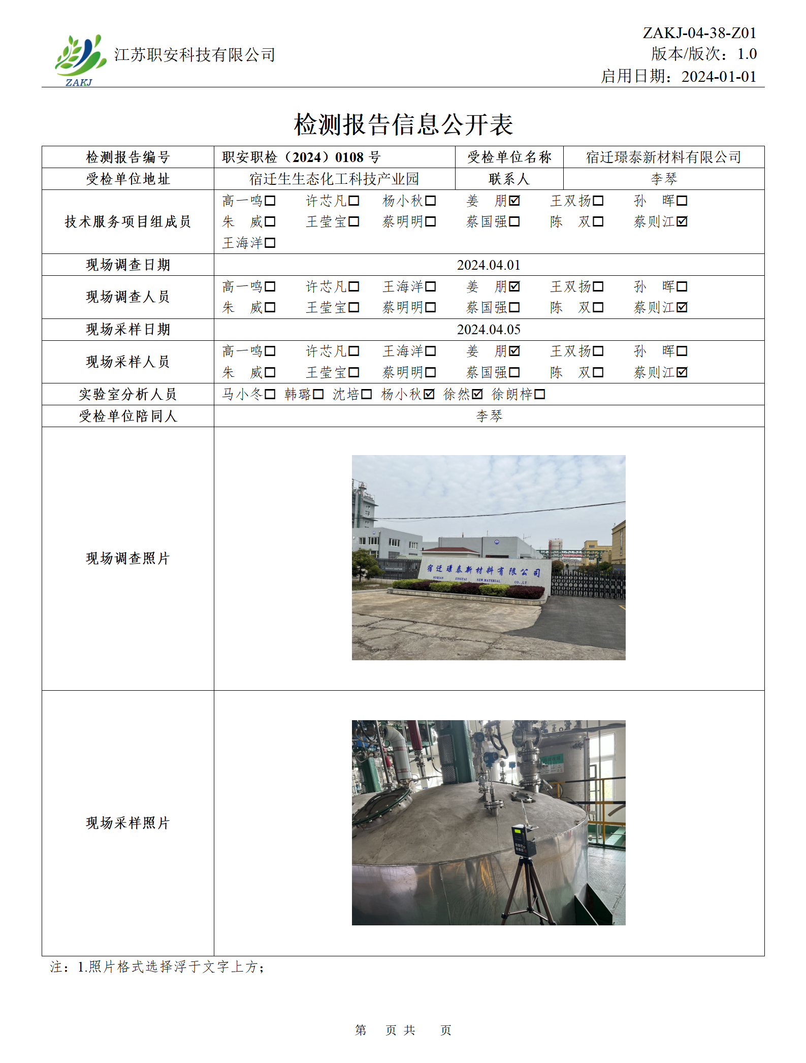 檢測報告公示