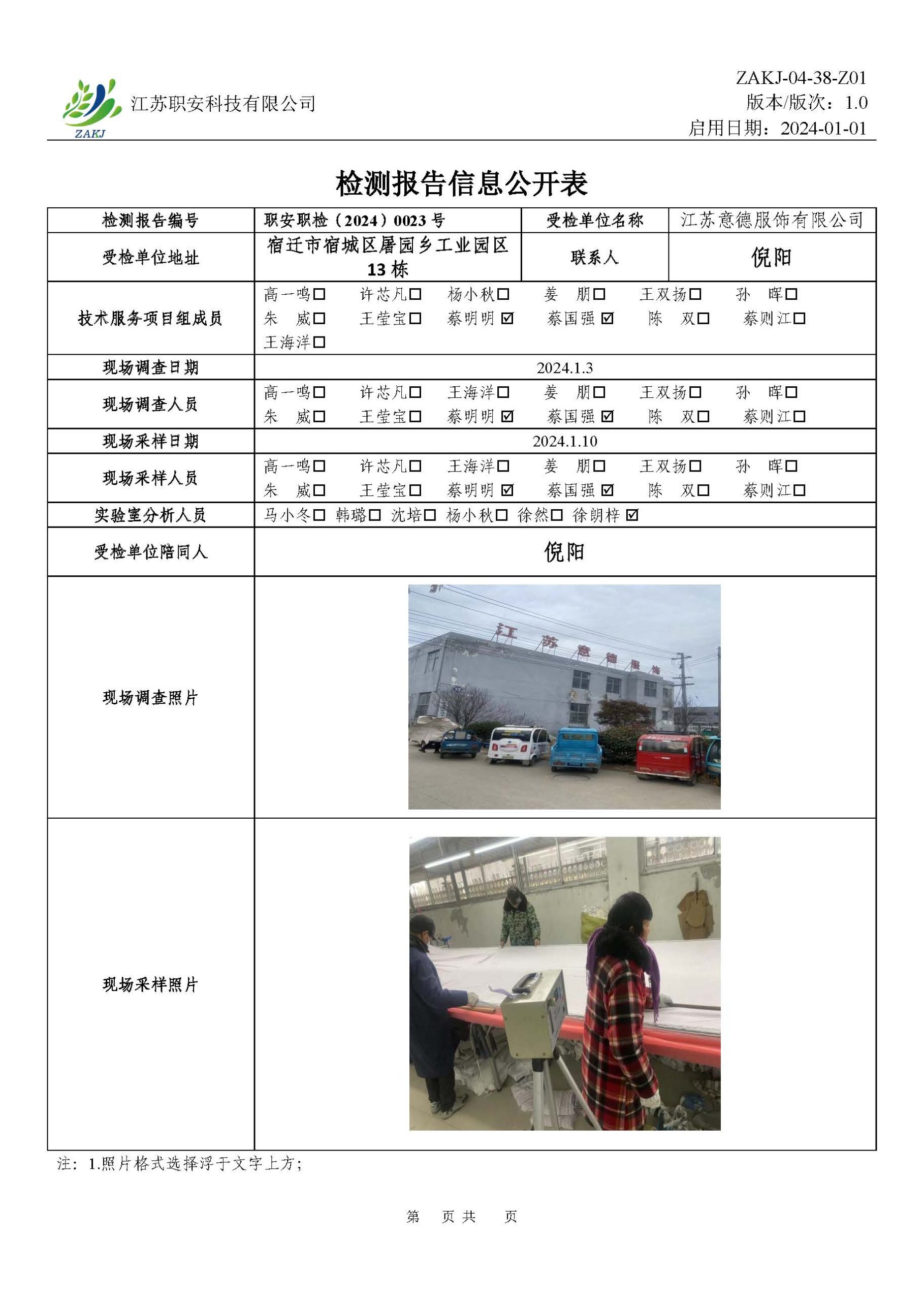 檢測報告公示